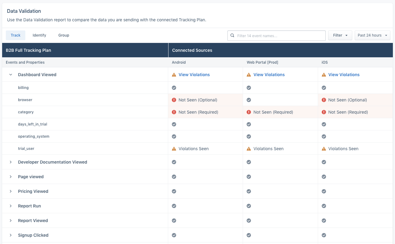We noticed that there were a lot of inbound requests for additions to a feature we called “Schema.” Schema provides an overview of the data passing through Segment and basic controls for filtering out some of the data. While we could have continued to build the incremental improvements that customers requested, we didn’t expect to see a significant business impact from that approach. Based on the volume of these requests, and the purchasing power of the customers requesting them, we decided to take a step back and see how we could provide a more impactful solution to the underlying challenges our customers were facing.