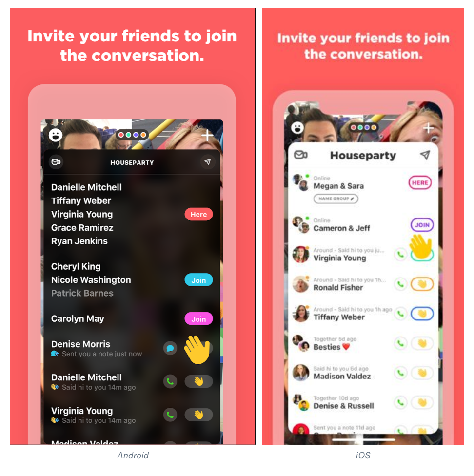 The differences don’t stop there. One of the biggest drivers of new Houseparty users comes from invites from friends. One friend will text another asking if they’d like to join them on the app. This text invitation is the single most important factor driving the company’s growth.