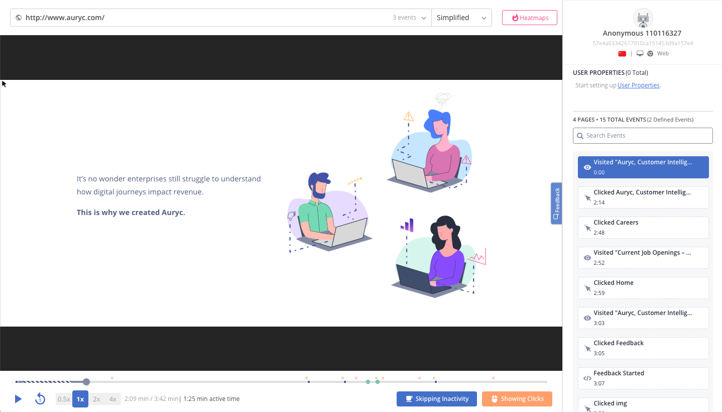 The powers of Auryc and Segment allow for insights automation without custom code or expensive engineering implementation time. Just sign up for Auryc, and paste your credentials into the Segment integrations page and the Segment snippet will load Auryc automatically and your journey to automated insights begins immediately.